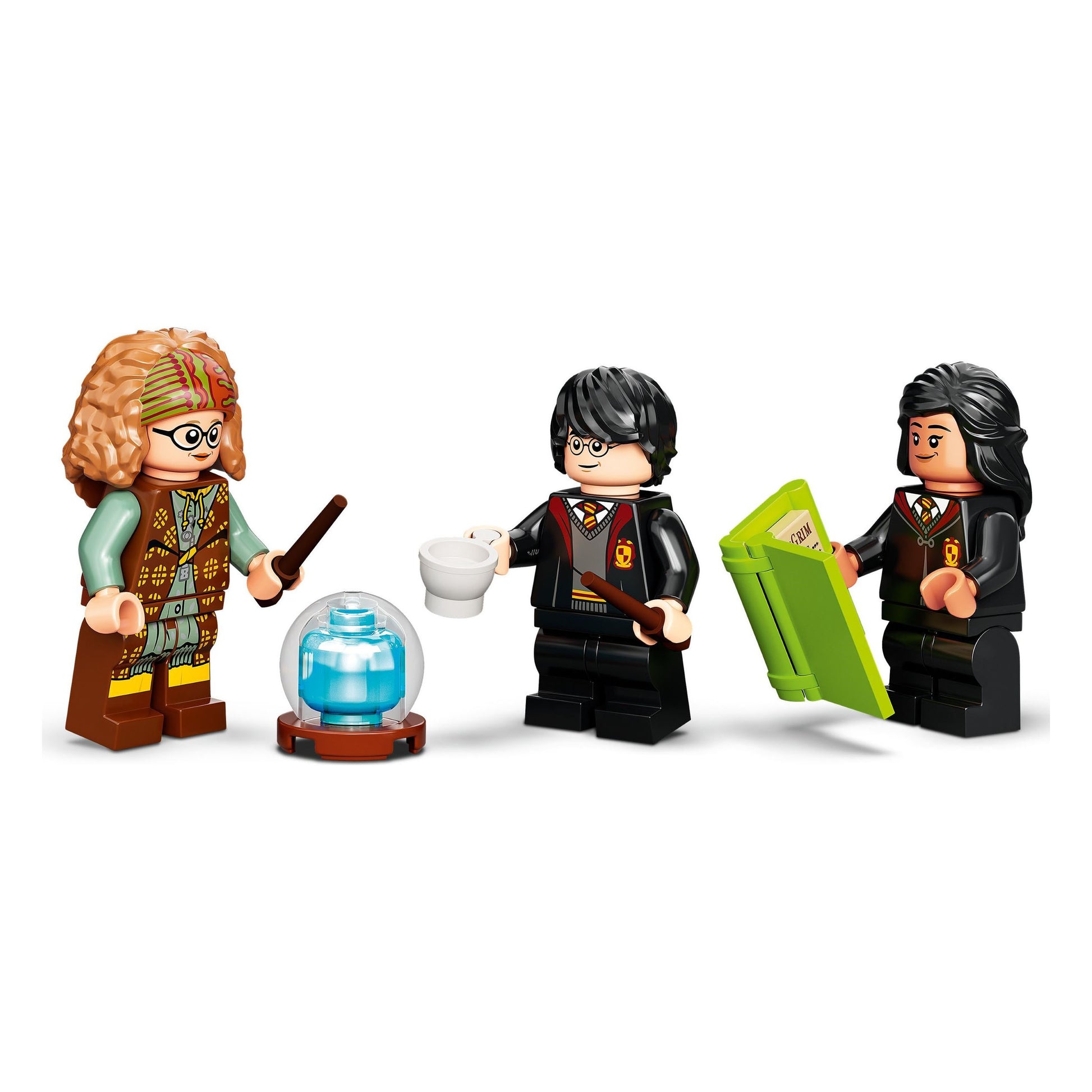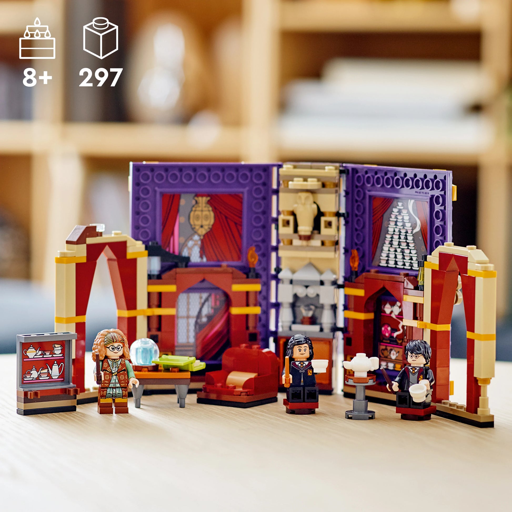 The LEGO playbook’s spellbinding cover unlocks to reveal a magical classroom full of adventures. There are 3 minifigures – Professor Trelawney, Harry Potter and Parvati Patil – plus lots of cool accessories. Some elements are built in, such as the storage cupboard, while others are detached, like the armchair, desk, chairs, crystal ball and teacups, which lift out to expand the play space. The set combines with others in the range and packs neatly into the closed playbook, so kids can carry it wherever they go and store it neatly until next time.